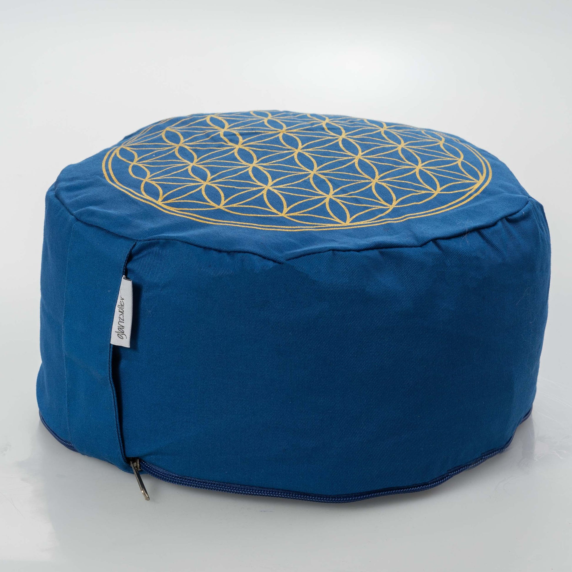Housse de coussin yoga « Océan Bleu » - Imprimé Fleur de Vie doré